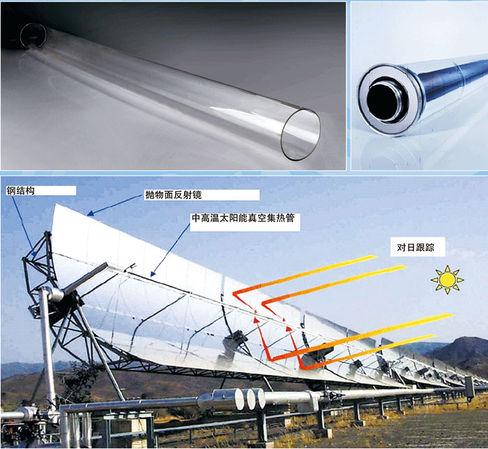 槽式太陽能熱發(fā)電系統(tǒng)的核心部分就是聚光集熱系統(tǒng),而聚光集熱系統(tǒng)的核心部件就是中高溫太陽能真空集熱管。